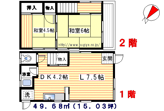 風 呂/トイレ/冷暖房/振 分/給 湯/専用庭付き/収納有り/フローリング/ガスキッチン/風呂・トイレ別室/洗濯機置場(屋外)