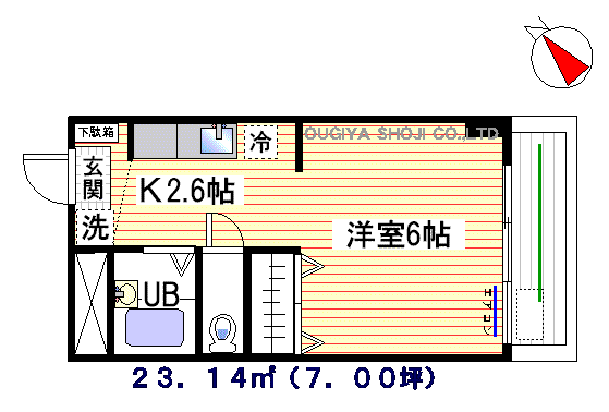 階 数 | 6階/8階 | 間取 | Y5.5-K2.6 | 面積 | 23.14u 7坪 | ||